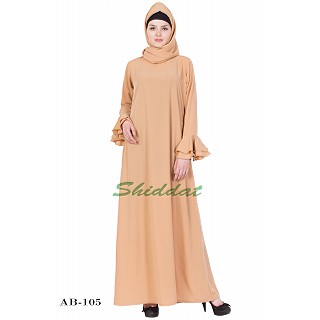 Islamic dress online- Beige color abaya | Frills on sleeves | Kashibo fabric