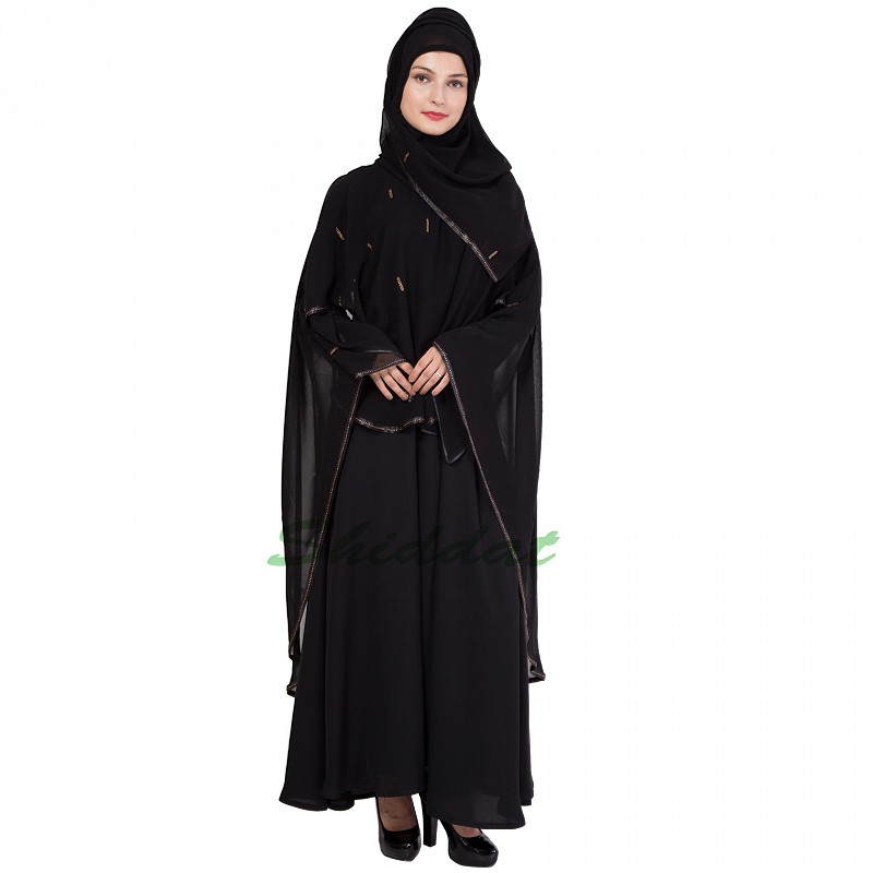 Tags: Abaya, Bhaijan Burqa, Islamic dress, Double layered abaya dress, Layered abaya, Cape abaya, Poncho abaya