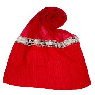 Designer Lace Crush Stole - Red