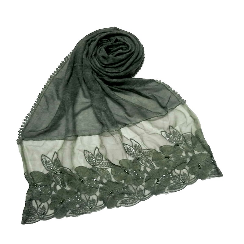 Hijab online - Designer Flower Premium Cotton | Scarf | Green