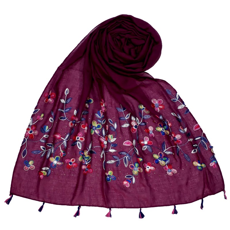 Stole online - Premium Diamond Ari 100 % Cotton Women's Stole | Scarf | Purple