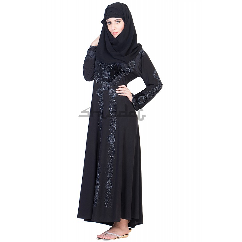 Beautiful A-Line Style with Velvet Patch Design Black Abaya/ Burqa .