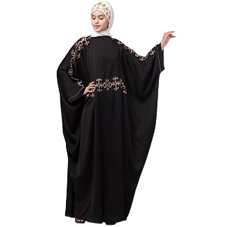 Party wear Kaftan abaya with embroidery work- Black-Gold